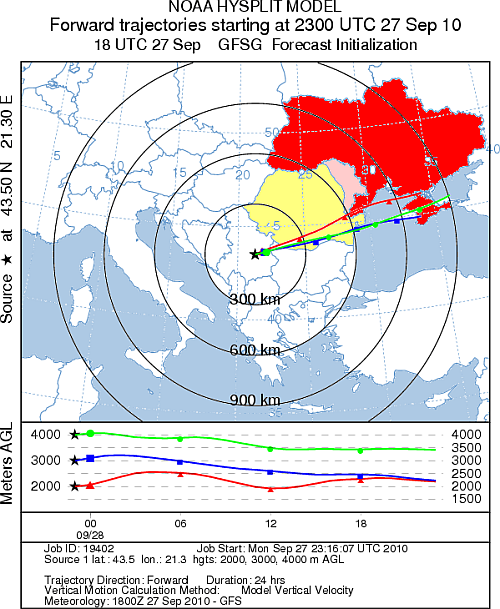 A quick forecast of the SWI2 team's trajectory over the next 24 hours puts them in southern Romania (yellow) by around 0200UTC. They then reach the east cost of Romania or the southern tip of Moldova (pink) at around 1200UTC. They cannot fly any further than this point and remain in the competition, because the Ukraine (red) is not listed on the competition map.